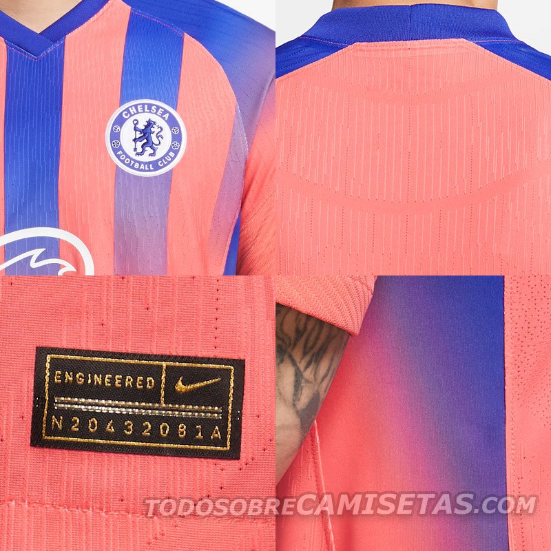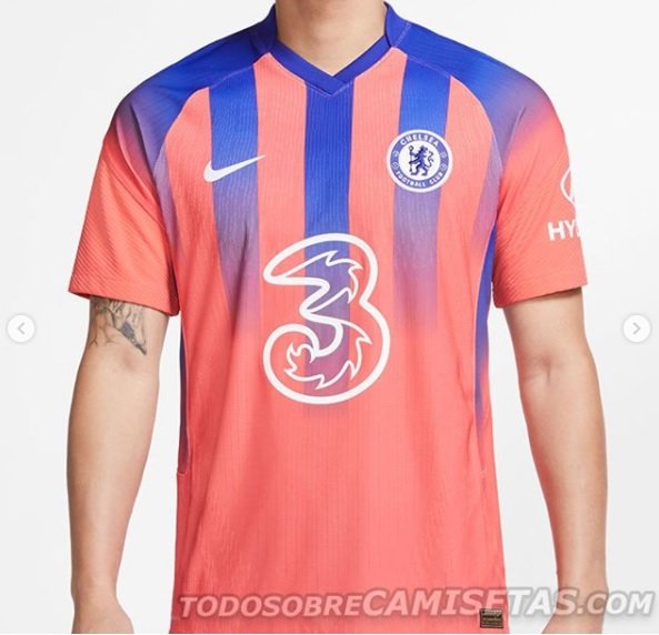 O site Todo Sobre Camisetas divulgou a provável terceira camisa do Chelsea para a temporada 2020/21. O terceiro modelo tem as cores em tons avermelhados e azuis e o fornecimento do uniforme é de autoria da Nike. Além disso, a Three e a Hyundai patrocinam o fardamento do Chelsea. A equipe londrina não confirmou a terceira camisa oficialmente, mas a loja virtual da Nike, na Índia, já disponibilizou o produto em sua página.